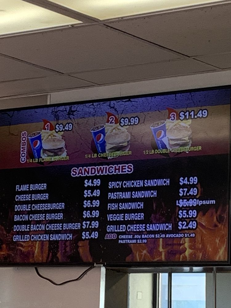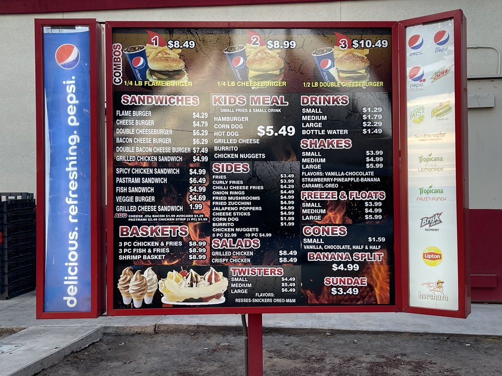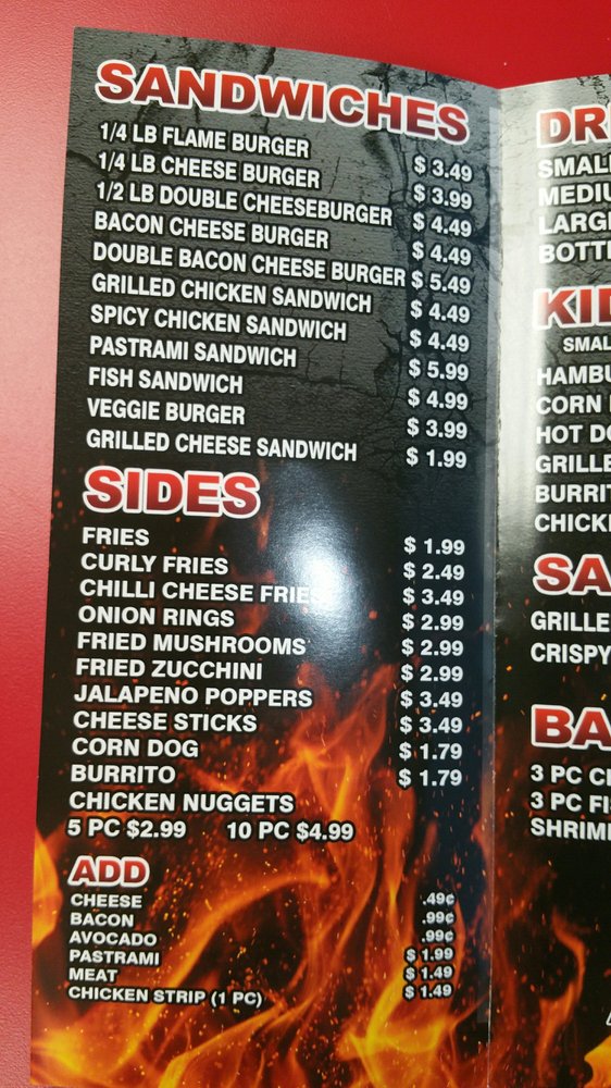 Flame It Burgers Menu
